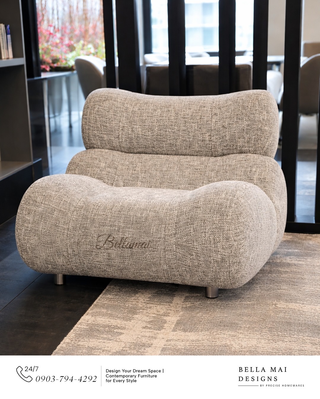 The compact and well-proportioned silhouette of both the seats and the small sofa, opens up to a new way of using the dining space: as a living room within the living room, a hybrid situation.